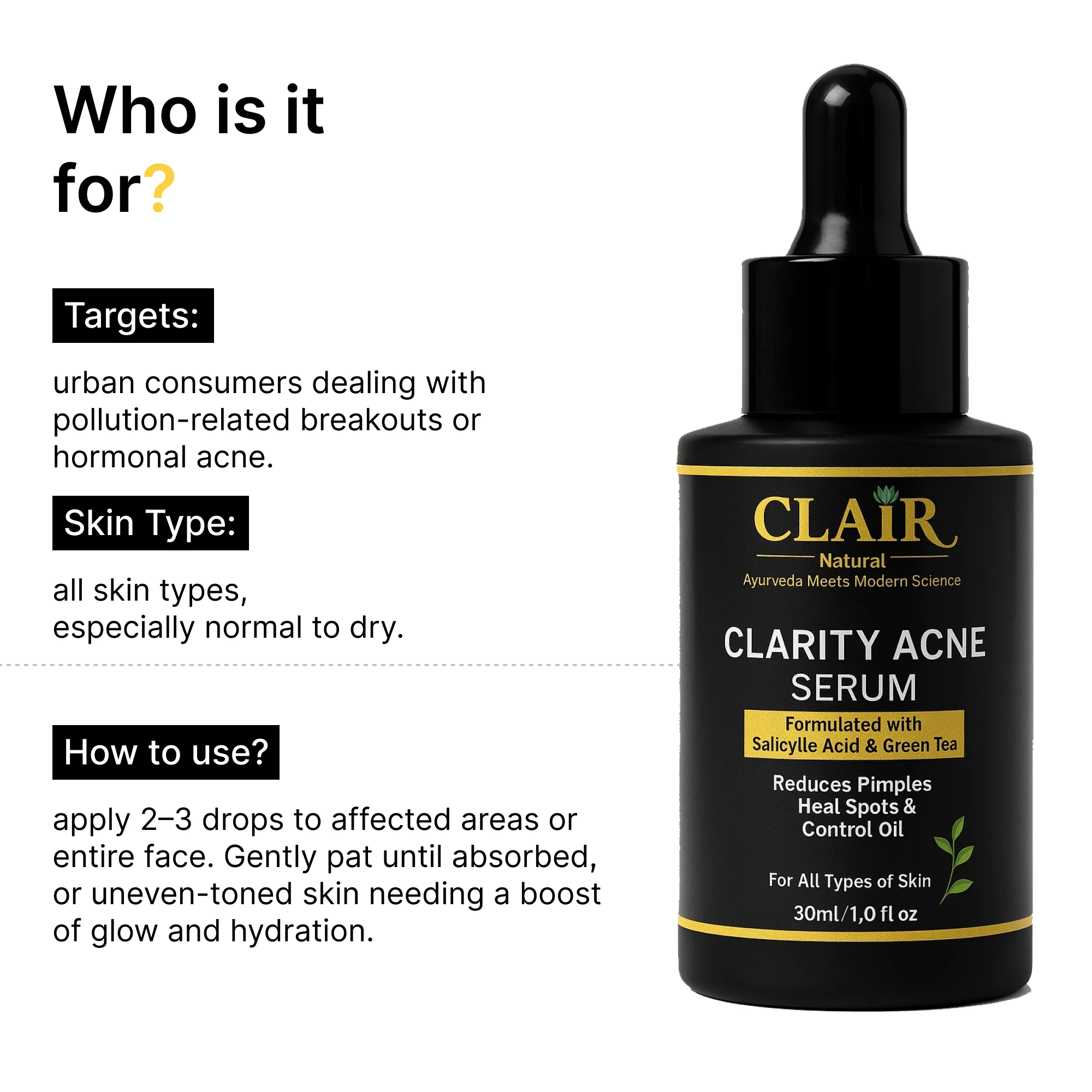 A: Start cautiously. Begin with once-daily application (evening only) and gradually increase frequency as tolerance builds. The high concentration of soothing ingredients (Centella, Chamomile, Neem, Green Tea) makes Clarity gentler than most SA serums. Patch test if very reactive.
