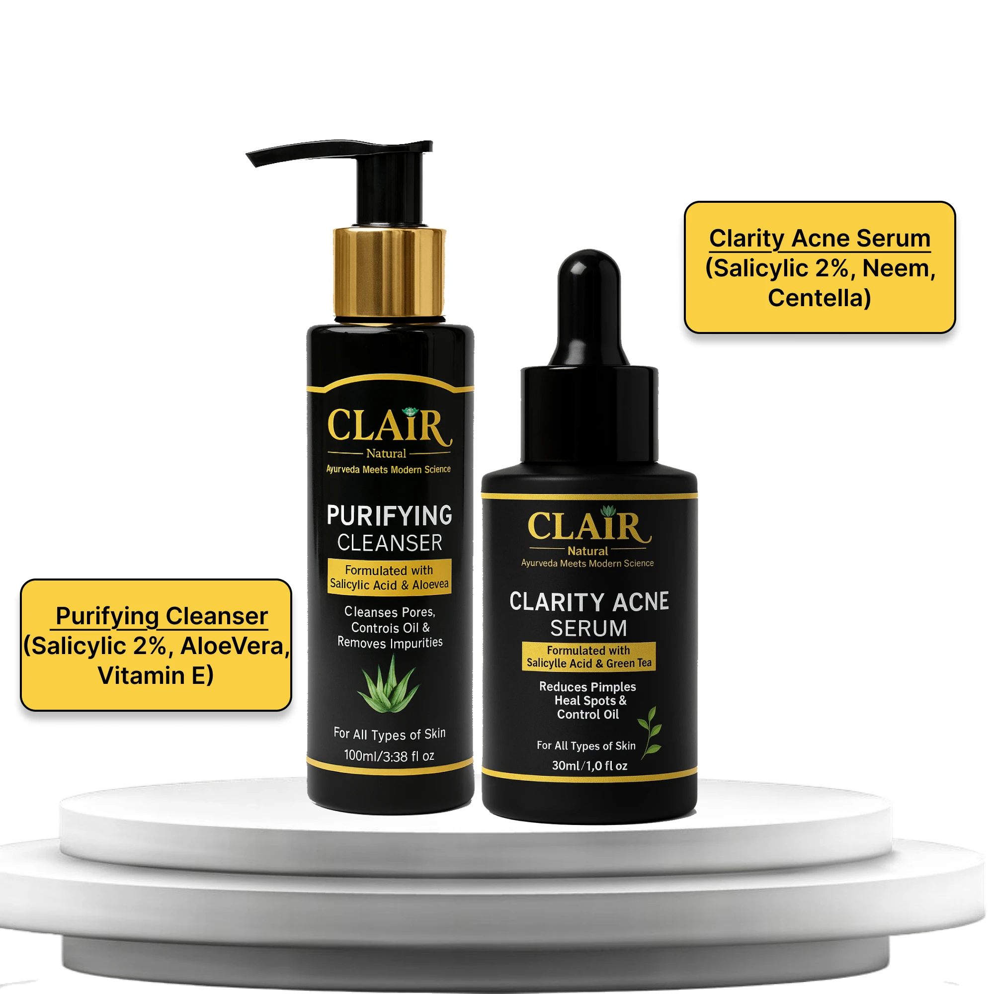acne routine designed to clear pimples, unclog pores, reduce blackheads, control excess oil and refine texture.