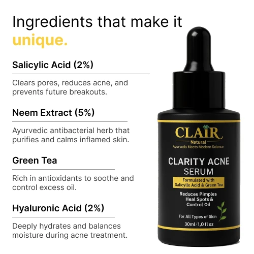 2️⃣ Clarity Acne Serum — 5% Salicylic Acid + Neem + Centella