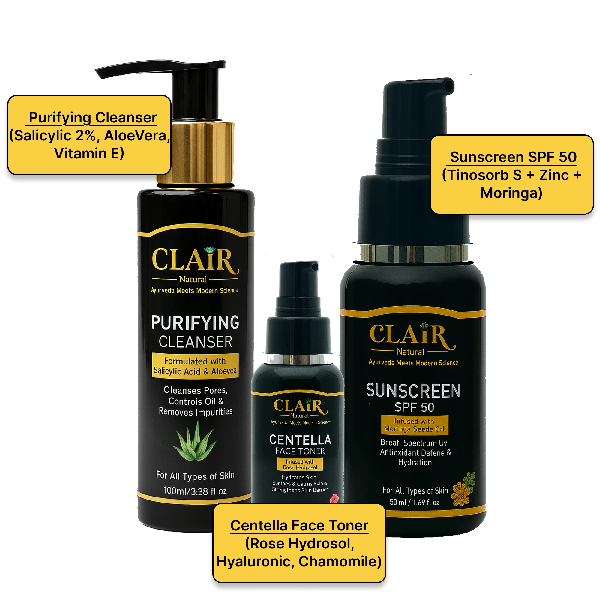 This combo removes pollution buildup, calms irritation, and protects skin from UV damage, tanning, pigmentation & premature aging.