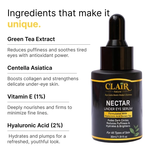 2️⃣ Nectar Under Eye Serum — Hyaluronate + Vitamin E + Green Tea + Centella