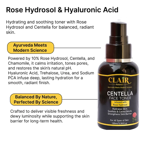 1️⃣ Centella Face Toner — Rose Hydrosol + Hyaluronic Acid + Glycerin