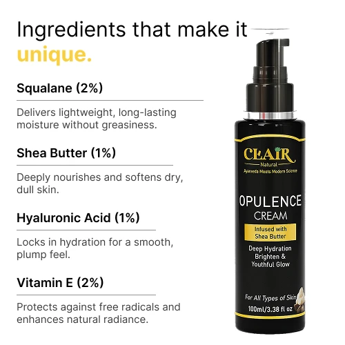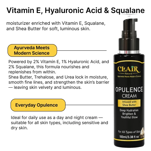3️⃣ Opulence Cream — Hyaluronic + Vitamin E + Shea Butter + Squalane