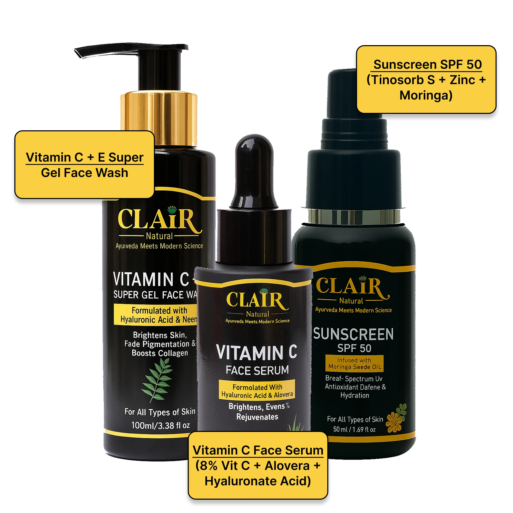 Powered by 8% Vitamin C, Vitamin E, Aloe Vera, Hyaluronic Acid & SPF 50 PA++++, this combo is gentle, effective and crafted for Indian skin tone & climate.